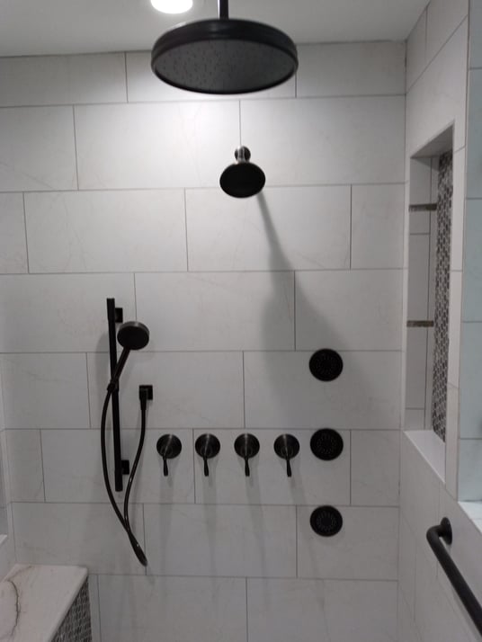 If you’re going all-out with luxury features, be sure to add body sprays to your new shower! Along with a rainfall showerhead and a handheld shower, body sprays can be incorporated to provide an invigorating shower experience.