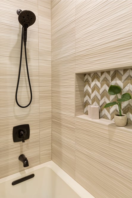 There are few things more appreciated than having enough space for all of your things – this is definitely true for the shower as well! A built-in shampoo niche to hold all of your bottles, soaps, creams, and candles is often an overlooked feature in shower remodeling. Adding a shelf or rack yourself is an option, but more often than not, these types of shelves are very bulky, won’t stay on the wall or hold the weight of the bottles, and tend to rust or mold after some time. If you’re going to remodel your shower, a built-in niche is the way to go to avoid the ongoing battle of shower storage (plus, it looks pretty!)
