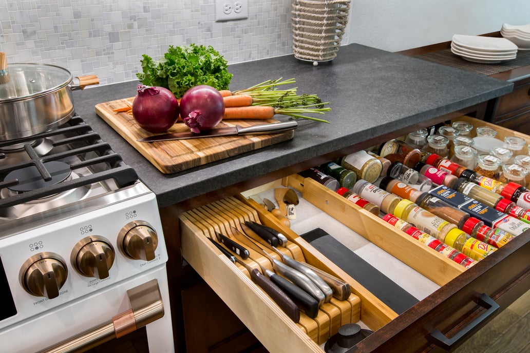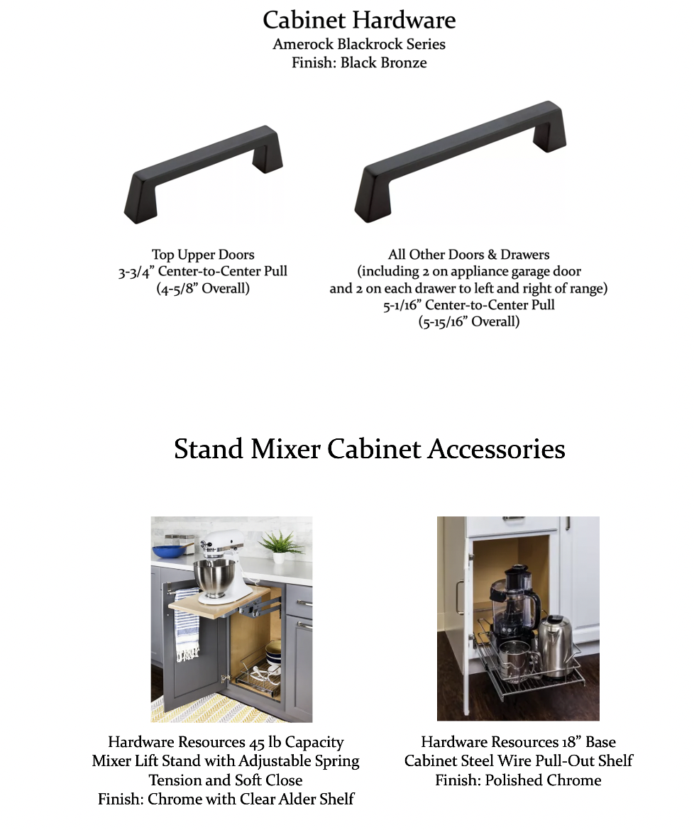 We love that these features still allow cookware and appliances to be easily used and stored without creating clutter on the counters!