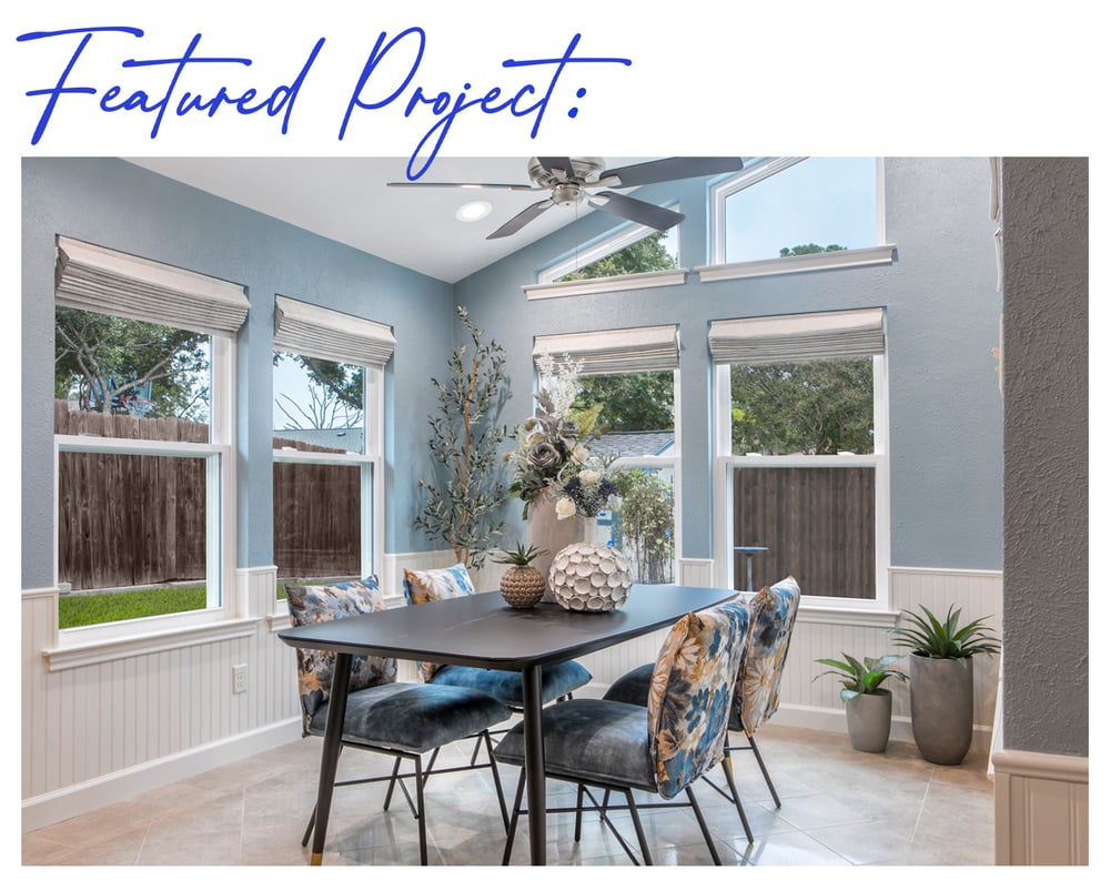Along with the many functions a sunroom can offer, it’s a perfect option if you’re hoping to comfortably enjoy all of the seasons without any threat of the outdoor elements. Our recent clients in North Richland Hills wanted to do just that — to make better use of an original sunroom while also creating a larger indoor area in their breakfast nook that would overlook the beautiful backyard. The solution was to remove the original patio/sunroom space and extend the breakfast nook into a new sunroom addition. See the full story and transformation photos in this month’s featured blog post!