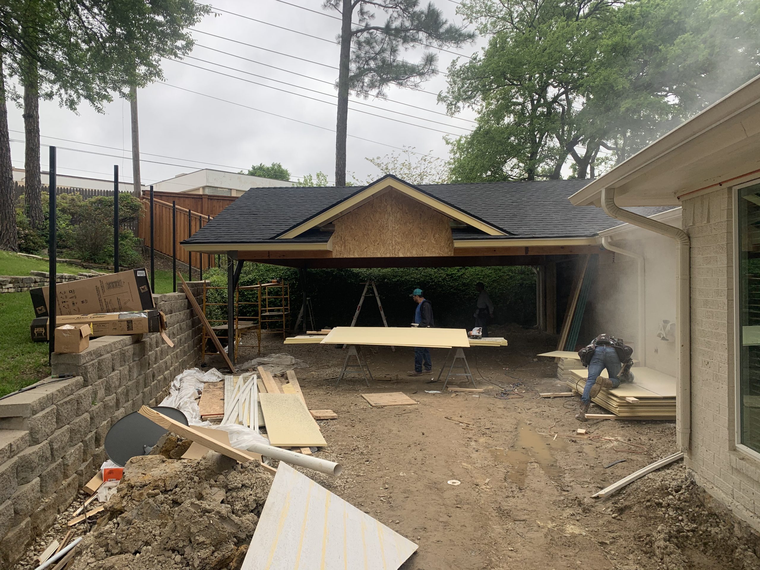 Our recent clients in Arlington, Texas came to us with three problems that needed solving: they needed additional storage space, a place to keep their beautiful tropical plants during the winter months, and a covered area to park their vehicles. The existing 2-car garage helped some with these issues, but with their vehicles inside, the garage became overly crowded. After chatting with our design team and considering the options, utilizing the spacious driveway made perfect sense! The addition of a large carport would provide ample shelter for their 3 vehicles while also allowing their garage to be converted into a storage space and winter house for their plants. This concept checked all the boxes, allowing them to ‘kill three birds with one stone!’