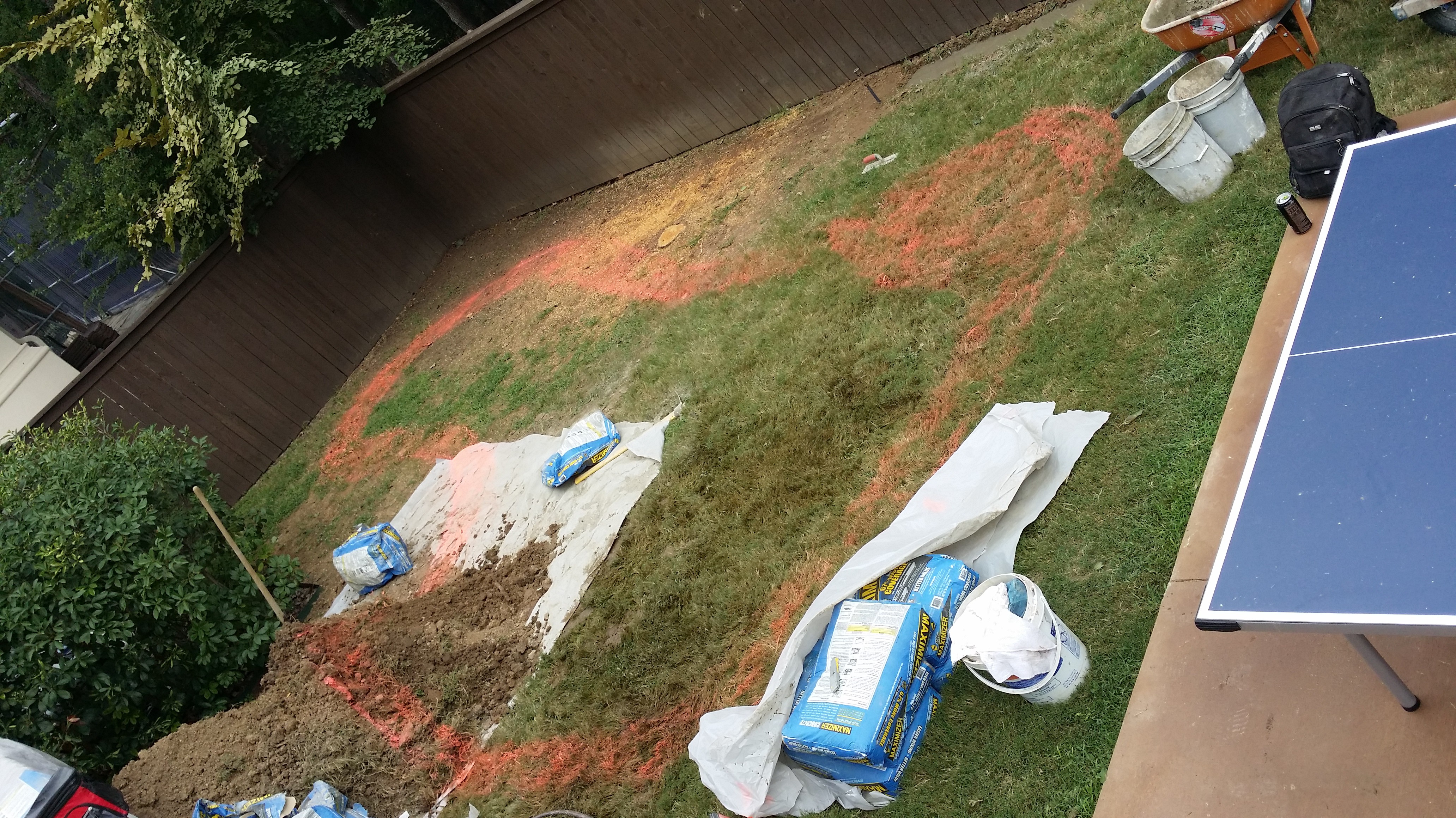 Once the design was approved on paper, we laid down the outline on the grass to make sure we had the shape just right, while allowing plenty of space for traffic and surrounding landscaping.