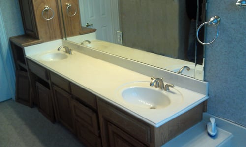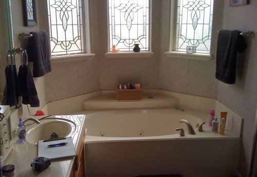 The existing whirl pool bath tub is made of cultured marble. We are going to install a drop in soaker tub which will give a better look and have more room.