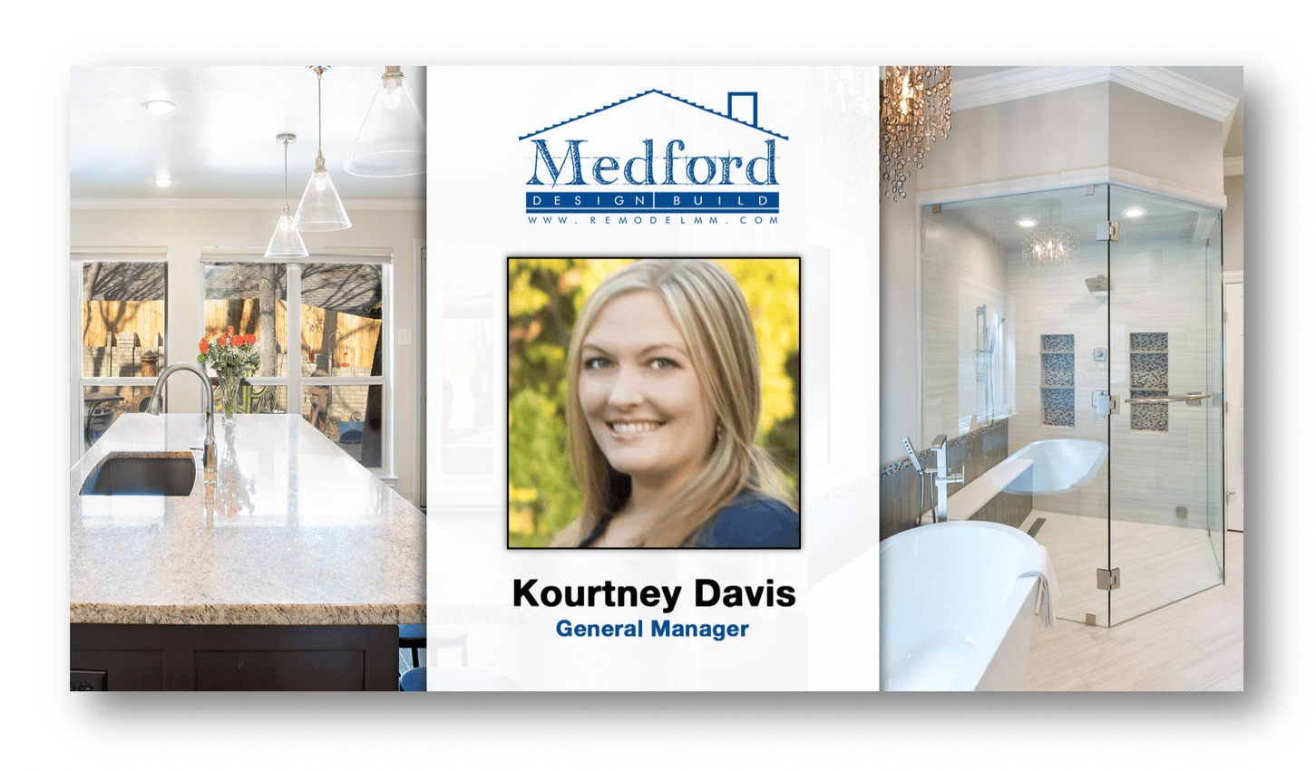 The Medford Team is happy to announce that Kourtney Davis has been promoted to General Manager of Medford Design-Build! She replaces Mike Medford, Sr. who will continue working with the Design team as Corporate President and will continue to provide leadership and guidance to the management team.