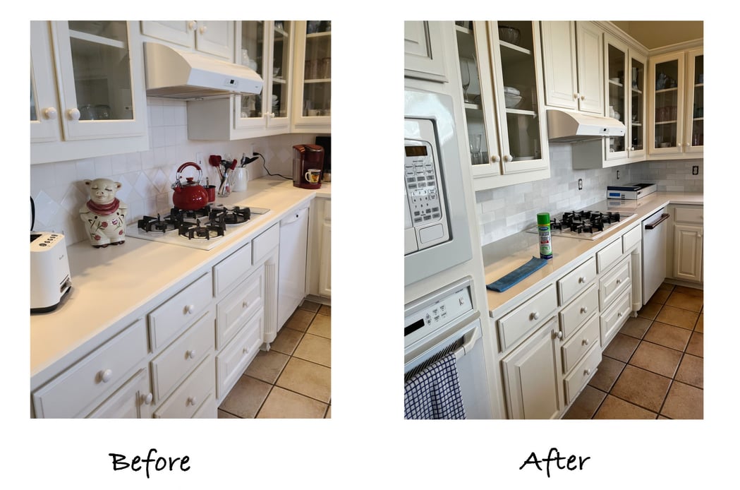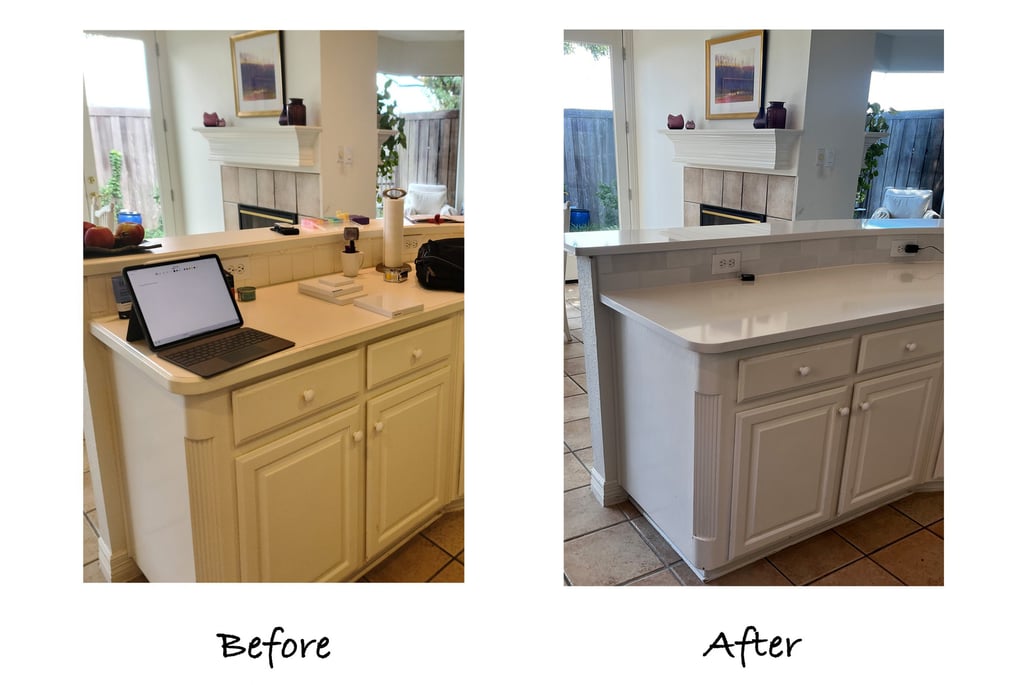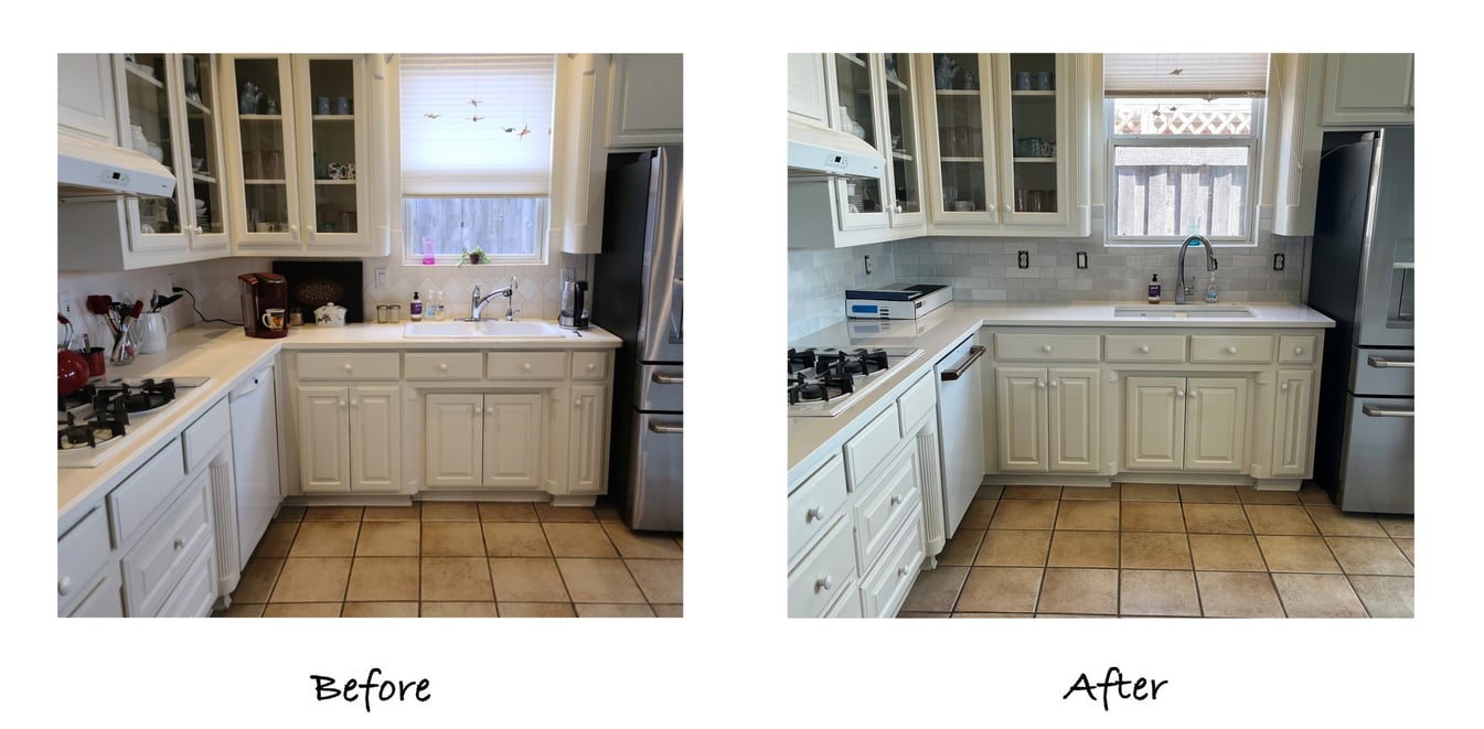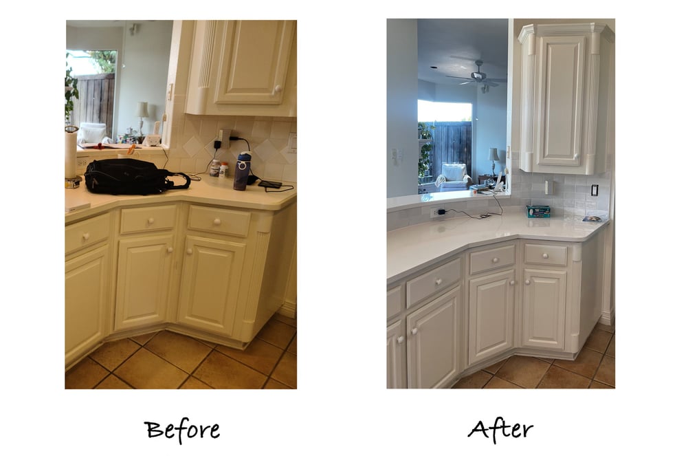 Our client is extremely happy with the outcome, which didn’t require any structural changes or even painting of the cabinets or walls!