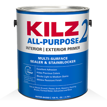 The next step is priming the smooth ceiling. Apply a strong primer, such as Kilz 2 Primer, evenly with a paint roller. It’s definitely helpful (though not required) to have a roller shield to prevent drips on yourself and the floor. Allow it to dry fully before moving to the next step.