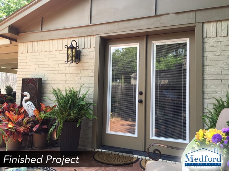 Installing a door in an exterior wall where there is not an existing door is a pretty big project, both in cost and process, but it can reap great benefits. Our clients in Arlington are a great example. They had a decent sized area on the side of their home that they never used and thought it would be the perfect space for a patio. Adding French doors from the living room to the new patio created a convenient access point and allowed a ton of natural light into the living room. The new outdoor space is great for hosting guests or just enjoying on a sunny day.