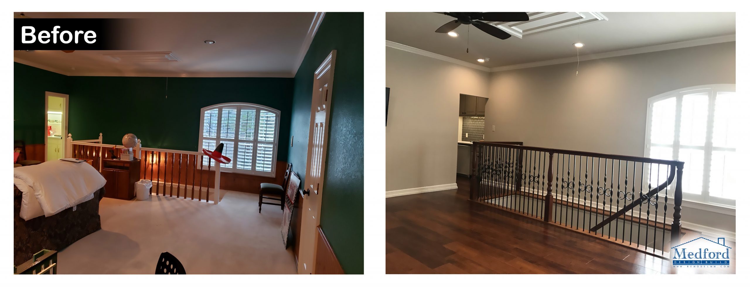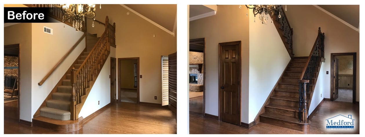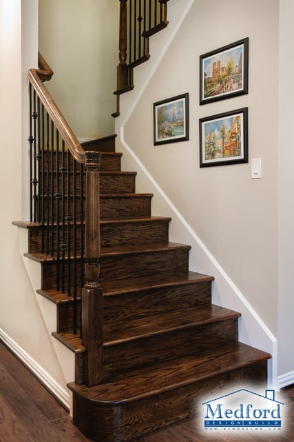 Staircases are significant structural staples in two-story homes, which can feel a bit overwhelming when it comes to remodeling or reconfiguring them. While some staircase projects are more complex than others, nine times out of ten, they’re just as doable as any other type of renovation. Of course, as with any significant remodel, it’s critical to hire a company that is knowledgeable and experienced with that specific type of project. The Medford Team has been privileged to successfully complete several staircase remodels across Tarrant County over the years, all of which turned out beautifully!