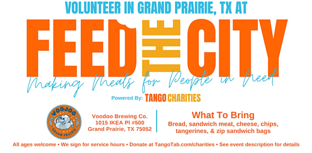“Please join us as we Feed The City at Grand Prairie, TX to make lunches for people in need. Feed The City events are family-friendly and are open to all. We welcome organizations, groups, and school-age children.