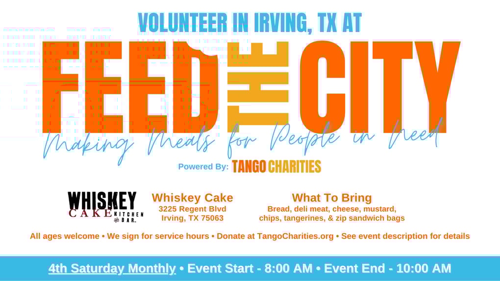 “Please join us as we Feed The City at Whiskey Cake in Irving, TX to make lunches for people in need.