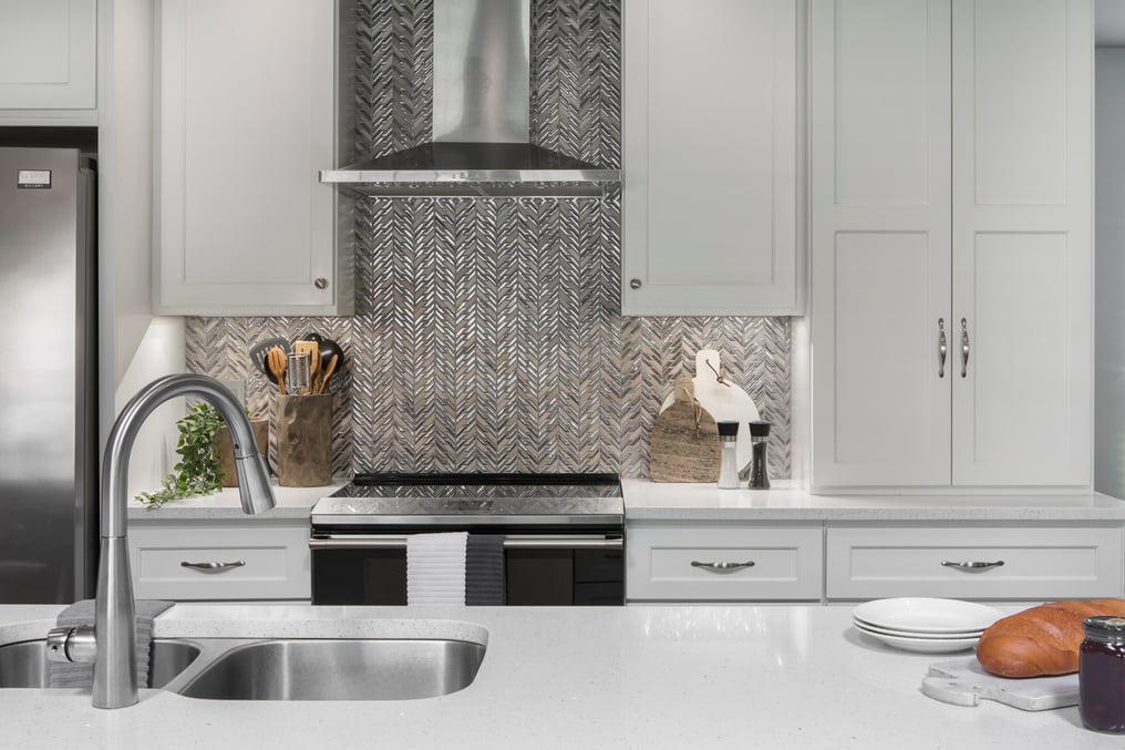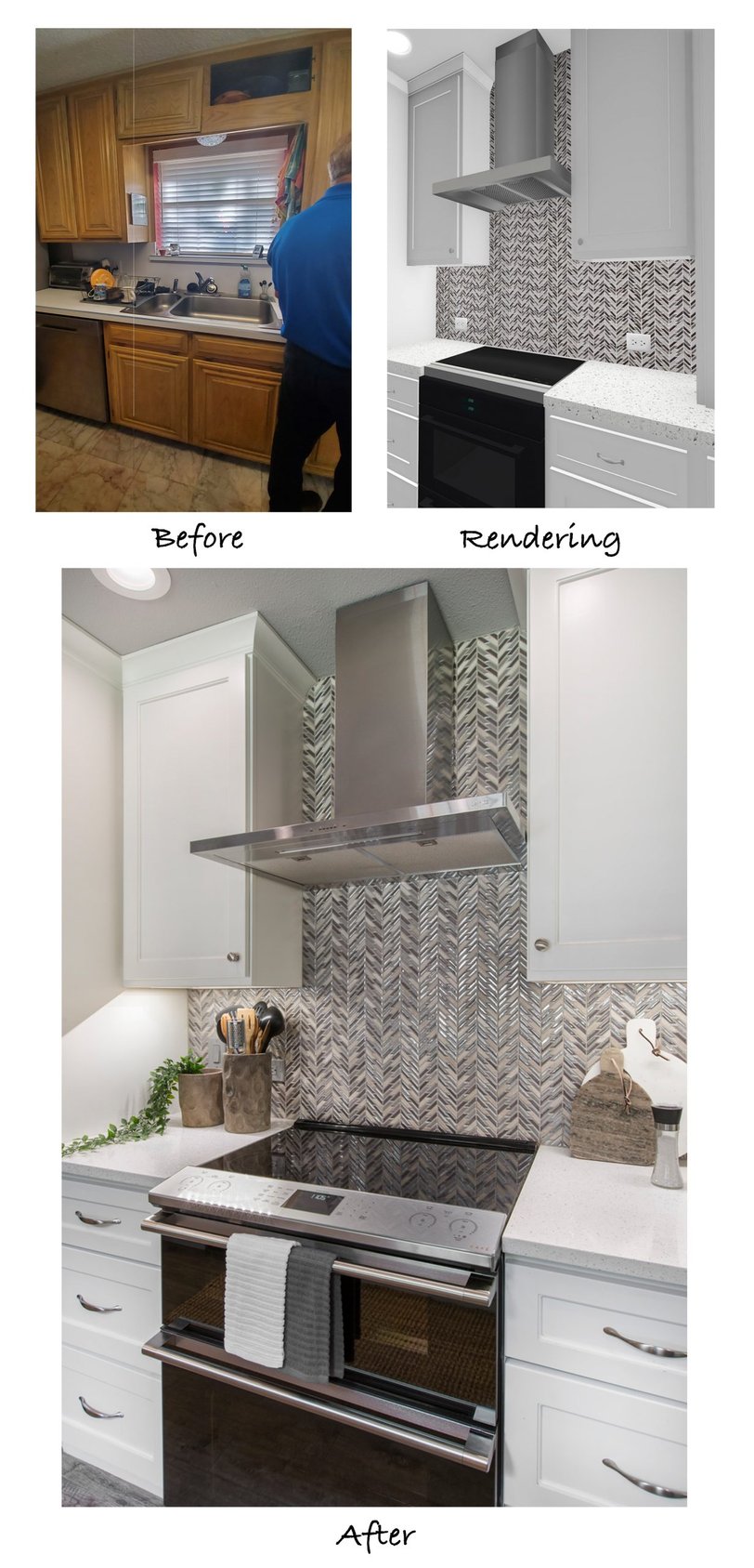 The decision was made to switch the locations of the sink and the cook top which required closing the window that was above the original sink. The clients were okay with this, as a large vent hood and show-stopping backsplash took priority.