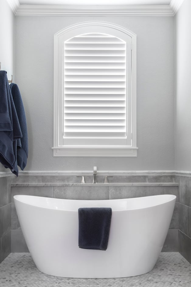 We replaced the dated cultured marble soaker tub with a beautiful acrylic free-standing tub. Quite the upgrade in looks! The window was replaced with an energy-efficient window with an added plantation shutter for privacy and additional efficiency.