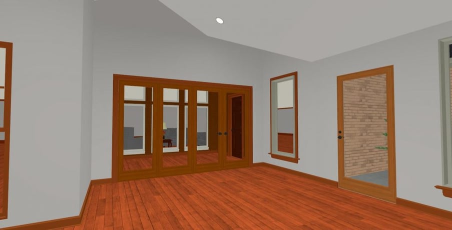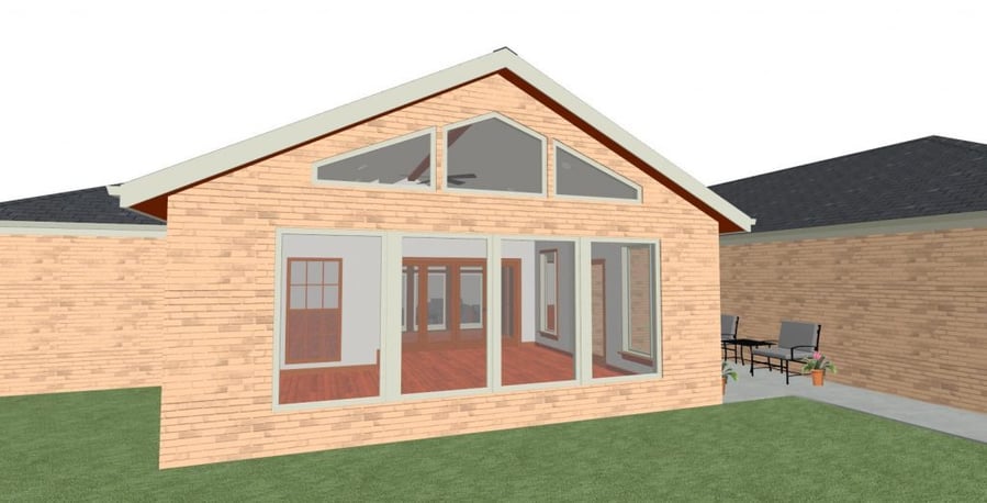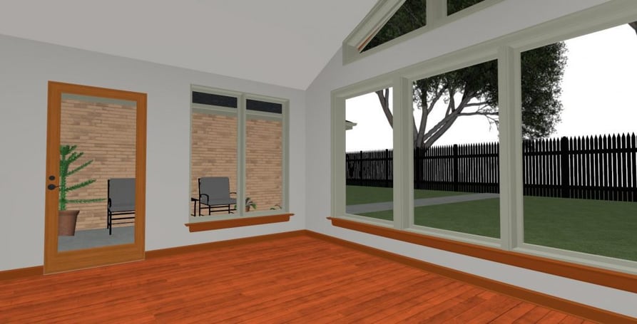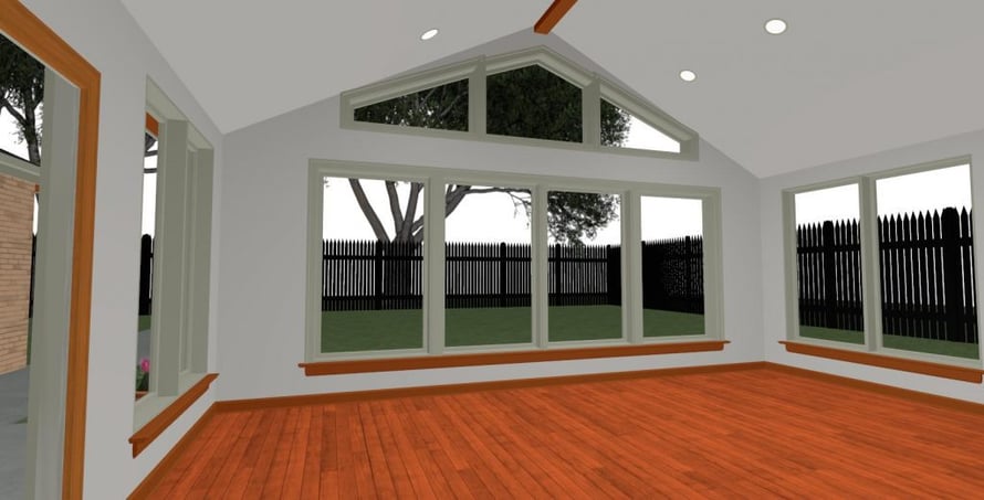 Once our designers knew what was important to the clients, they took photos and measurements of the existing home and backyard. When adding onto a house, it’s important that the addition matches the architecture and exterior style of the existing structure. Our designers were able to create a custom floor plan and 3-D renderings to show how the finished sunroom would look from both the inside and outside.