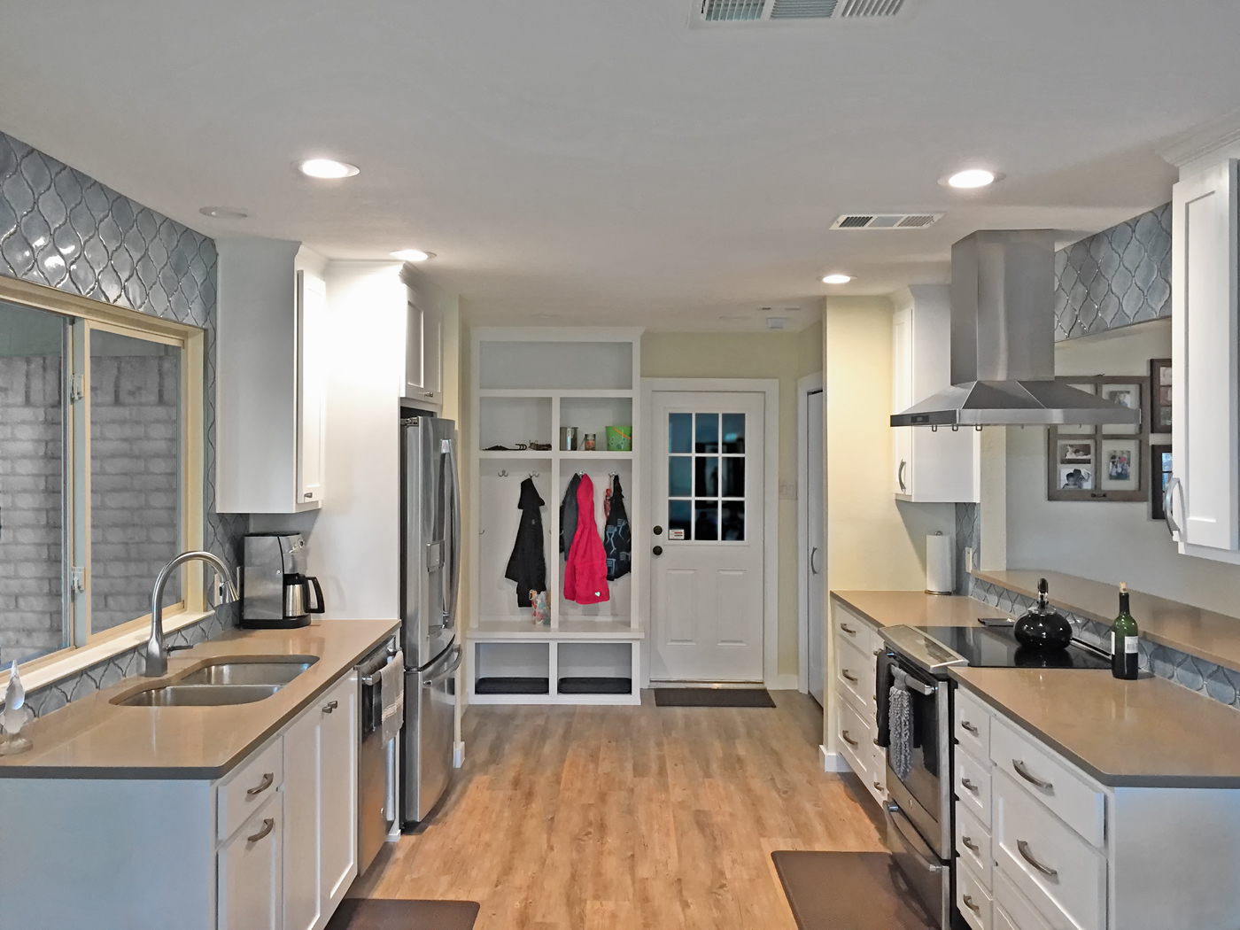 Our recent clients came to us wanting a more modern, streamlined look and improved functionality in the galley kitchen of their 1970s ranch home.