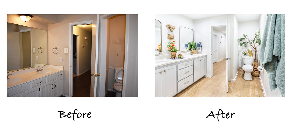 The initial reason for the bathroom remodel was to refresh the aesthetic. The clients wanted a brighter look with an updated vanity, tile, and lighting. They liked the idea of matching the neutral color scheme used in the kitchen and living room, which would also age well as the children get older.