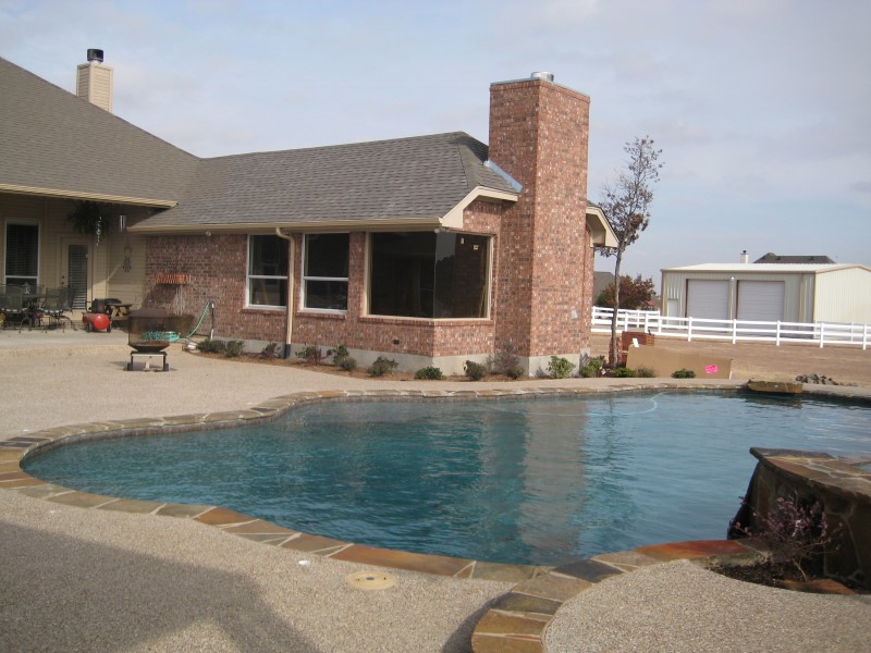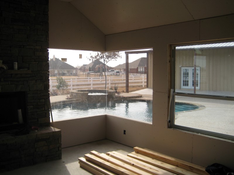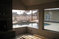 This homeowner wanted a convenient indoor space with a view of the pool. The result? A beautiful poolside add-on that includes a spacious family room complete with an eating area, fireplace, and a huge corner window overlooking the pool and yard! What a fun room to hang out with friends and family!