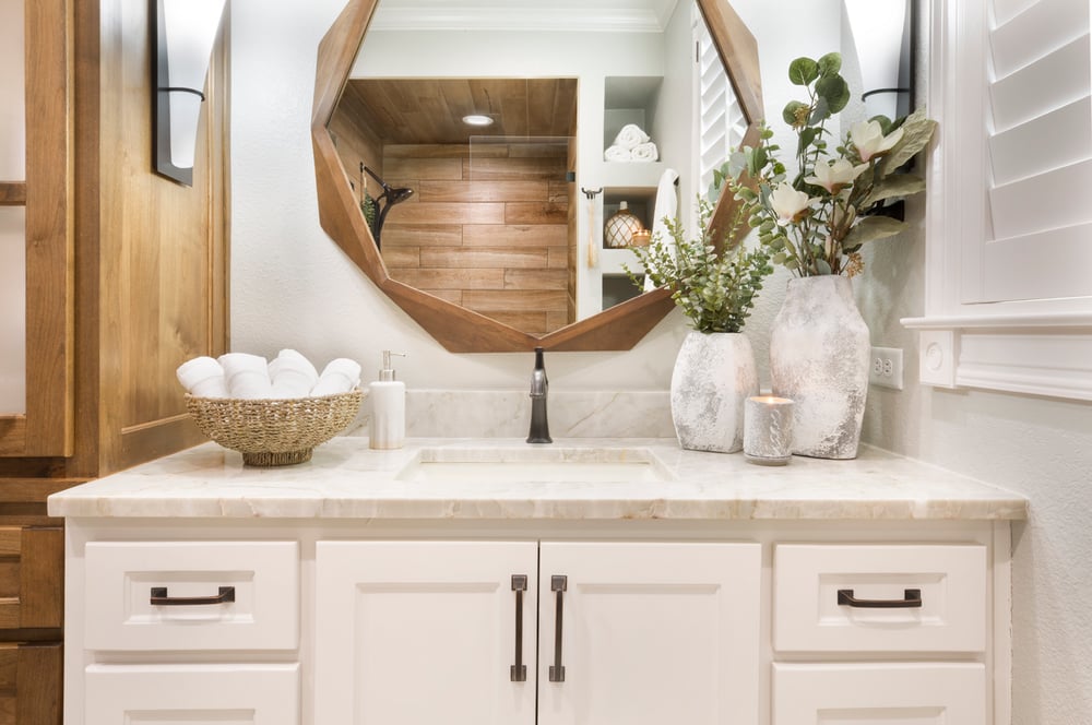When you think of relaxation and self-care, does a spa-like experience come to mind? For our clients in Burleson, a luxurious shower with a spa-retreat aesthetic was something they had long dreamt of for their master bathroom. Unfortunately, the original style and layout of the bathroom left much to be desired. They knew an extensive remodel was in order and reached out to our designers for assistance. Because we already had the privilege of remodeling their kitchen and guest bathroom, they were familiar with our process and our team. We are always thrilled when first-time clients become lifetime clients! It is a testament to our relationships and professionalism when we are trusted time and time again in the same home.