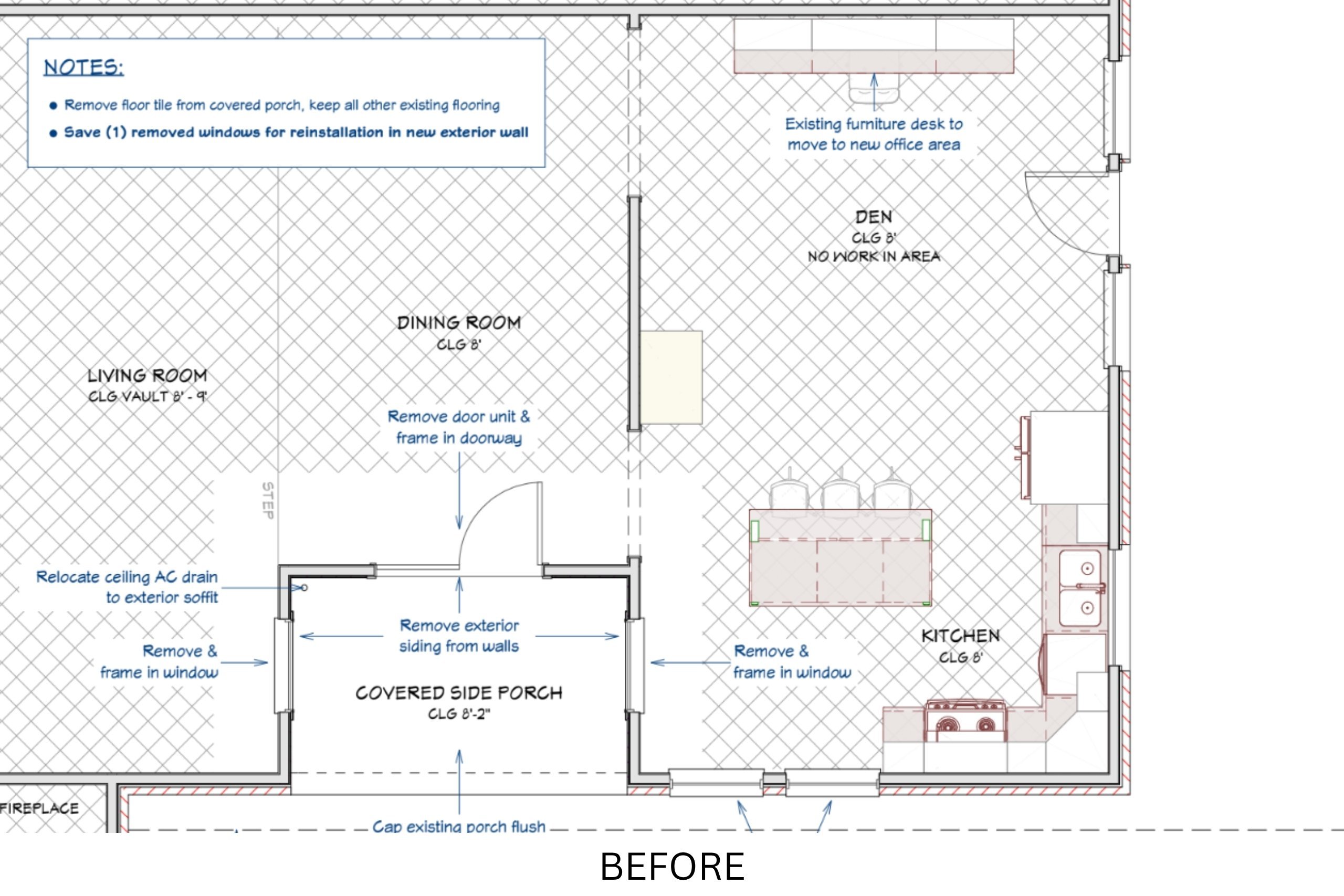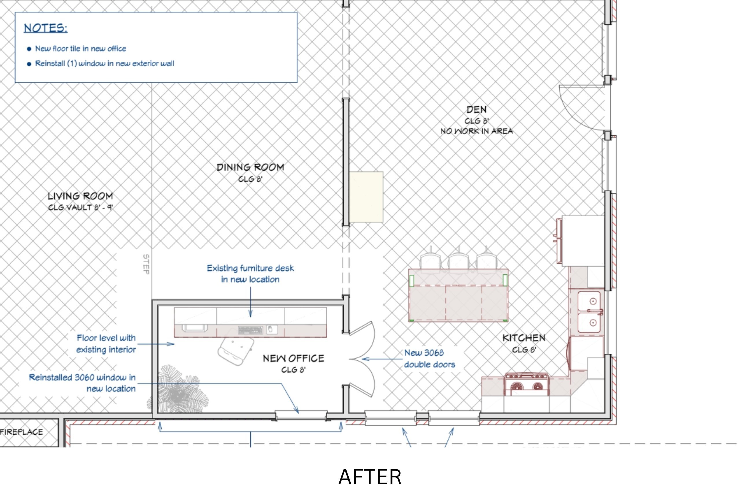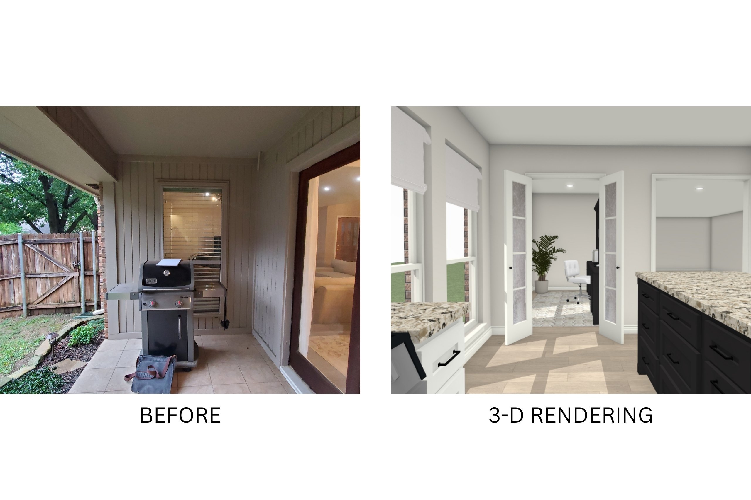 These visuals help illustrate how we transitioned the space from an open patio to a fully enclosed, private workspace that seamlessly ties into the rest of the home.