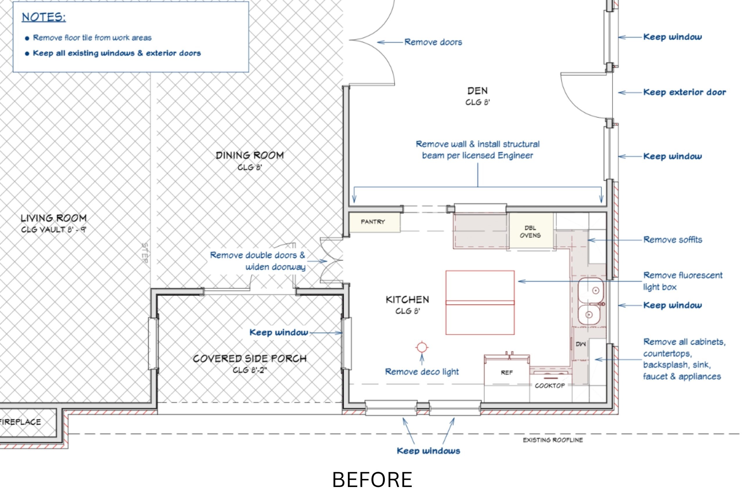 One of the biggest changes we made was removing the wall between the kitchen and the den. This not only opened up the space visually but gave us room to expand the layout for better flow and function.
