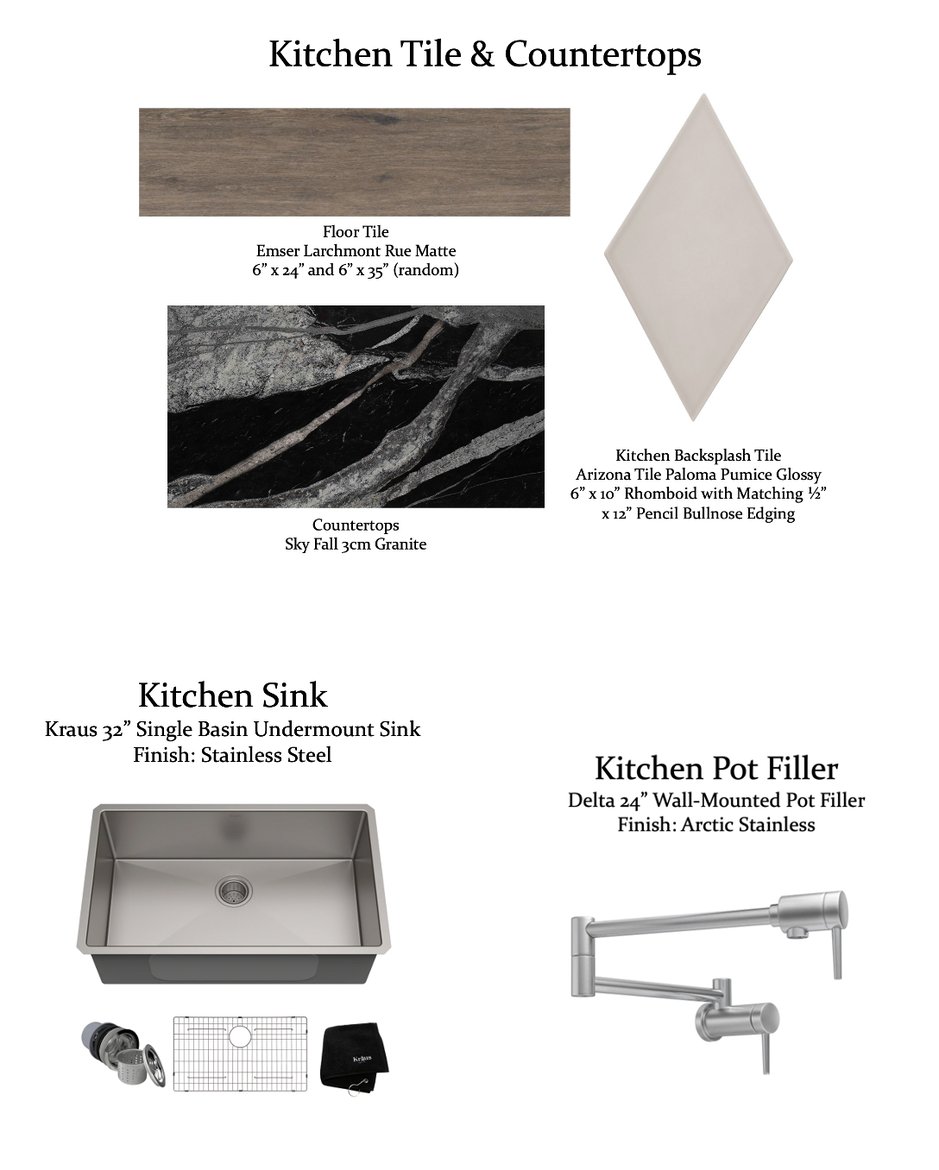 The sleek faucet matches the stainless steel and brushed nickel accents around the room, and features a pull-down sprayer and touch/voice controls. Another high-end selection that will make the clients’ daily chores more enjoyable!