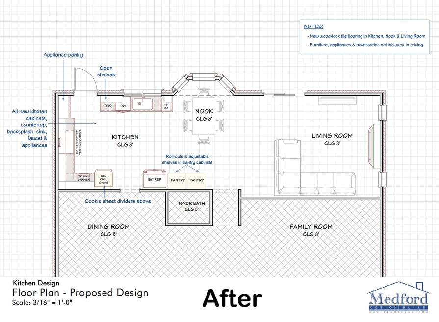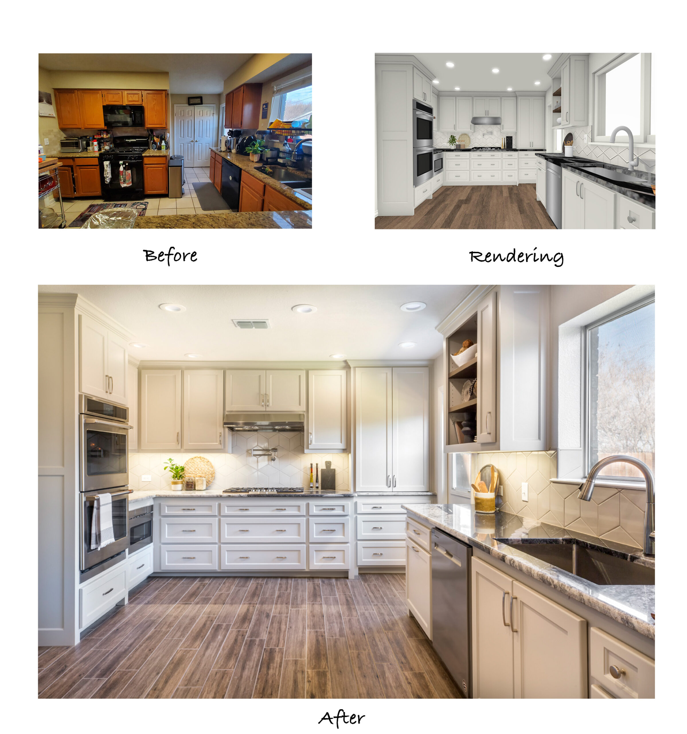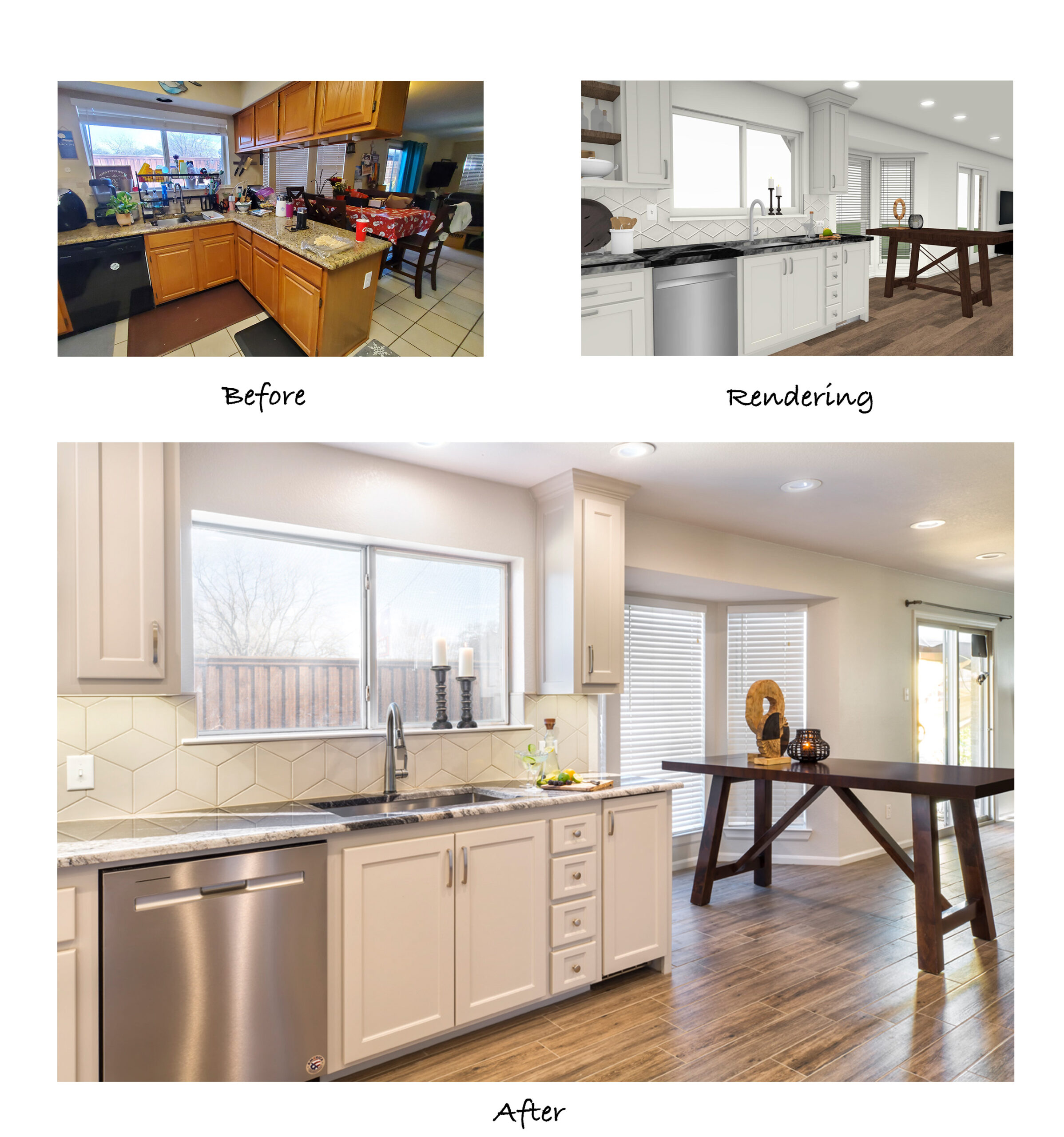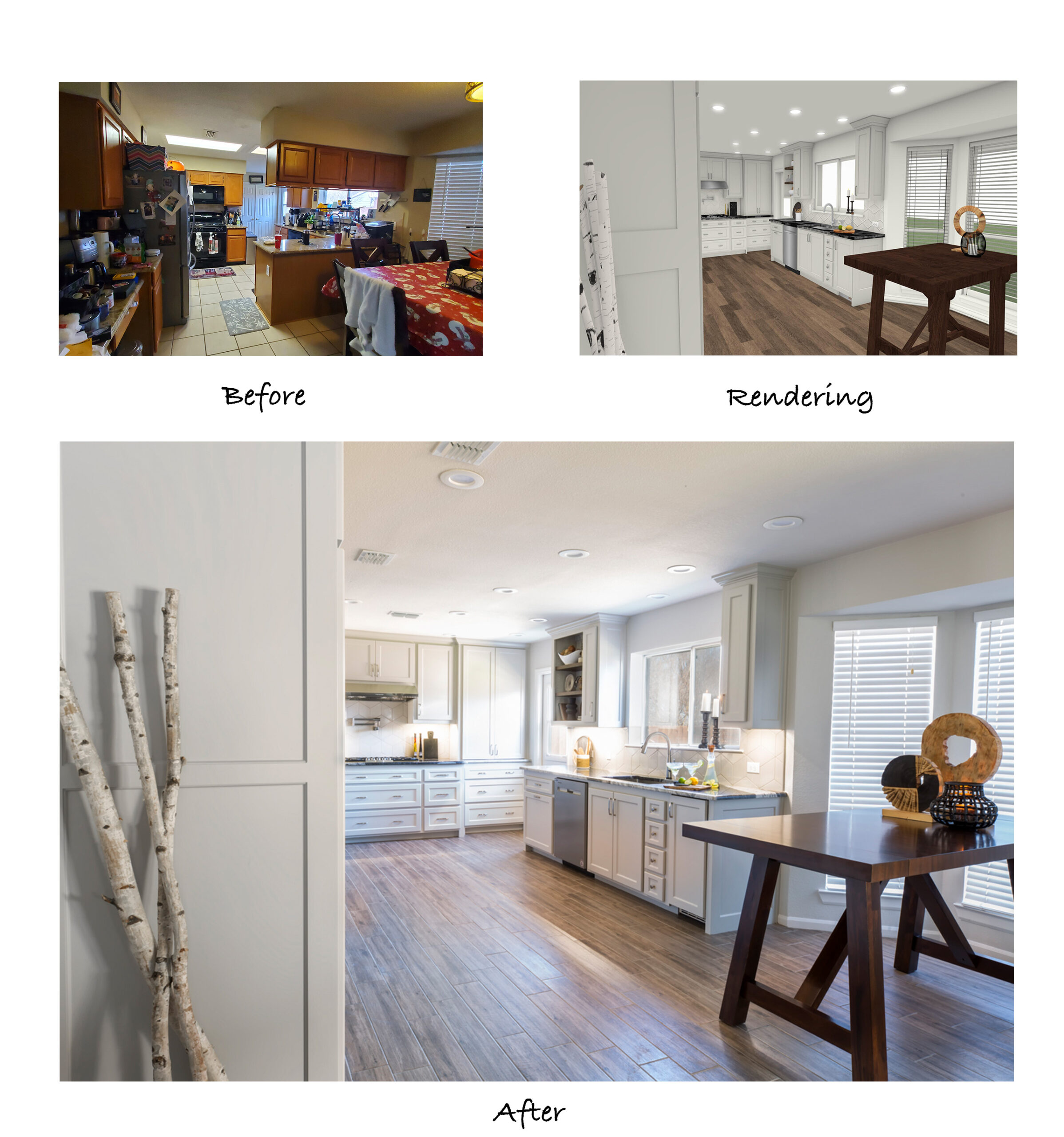 You can see in the floor plans that removing the peninsula and extending the back wall of the kitchen to the area the laundry room was created a large, open kitchen with a streamlined feel.