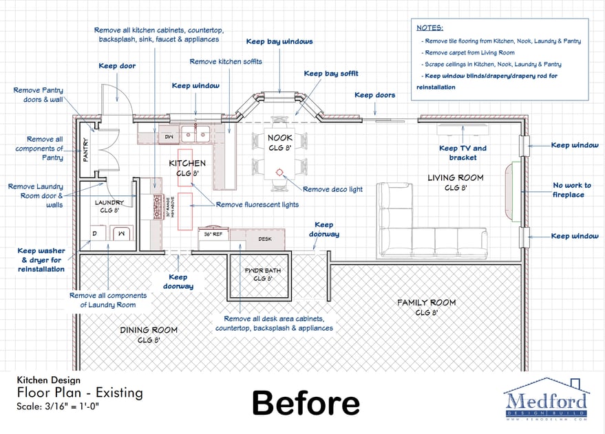 A functional layout can make all the difference in a home that you intend to spend years of your life in. For our recent clients in Grapevine, the layout of their kitchen was one of the biggest pain-points they experienced in their 1990’s house. Not only was the existing kitchen dated, but the footprint required them to snake through the kitchen to access the laundry room. This might not sound like a pressing issue, but considering the bedrooms were all upstairs, hauling laundry through this long trek several times a week was certainly a hassle! With hopes of making this chore more convenient and updating the kitchen in the process, the clients reached out to the Medford Team to discuss the best solutions.