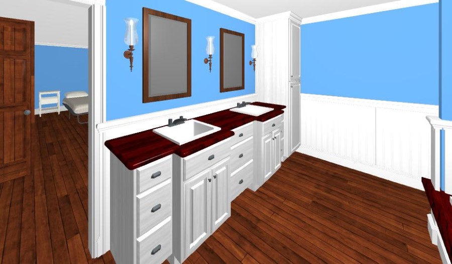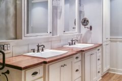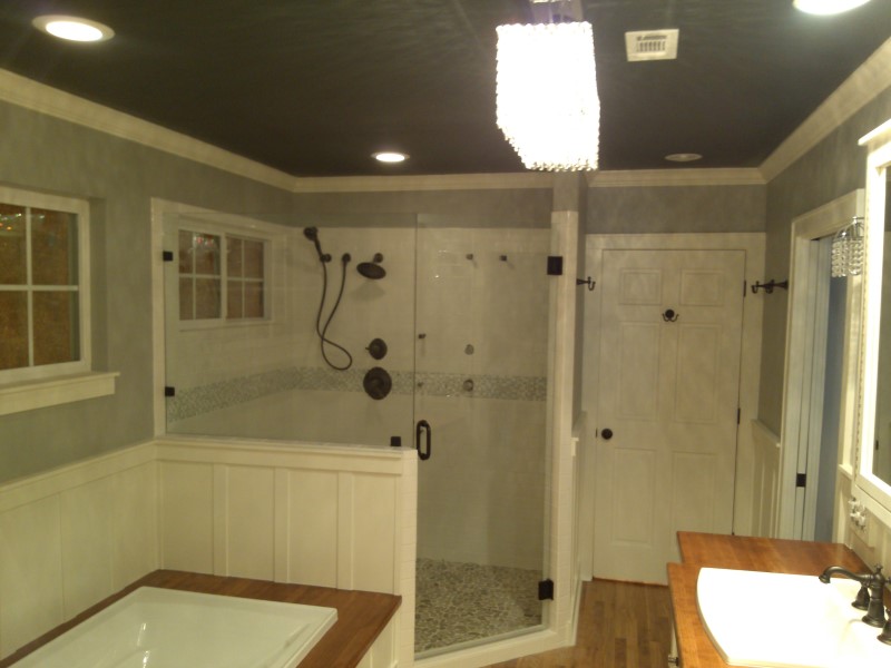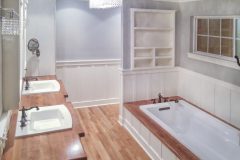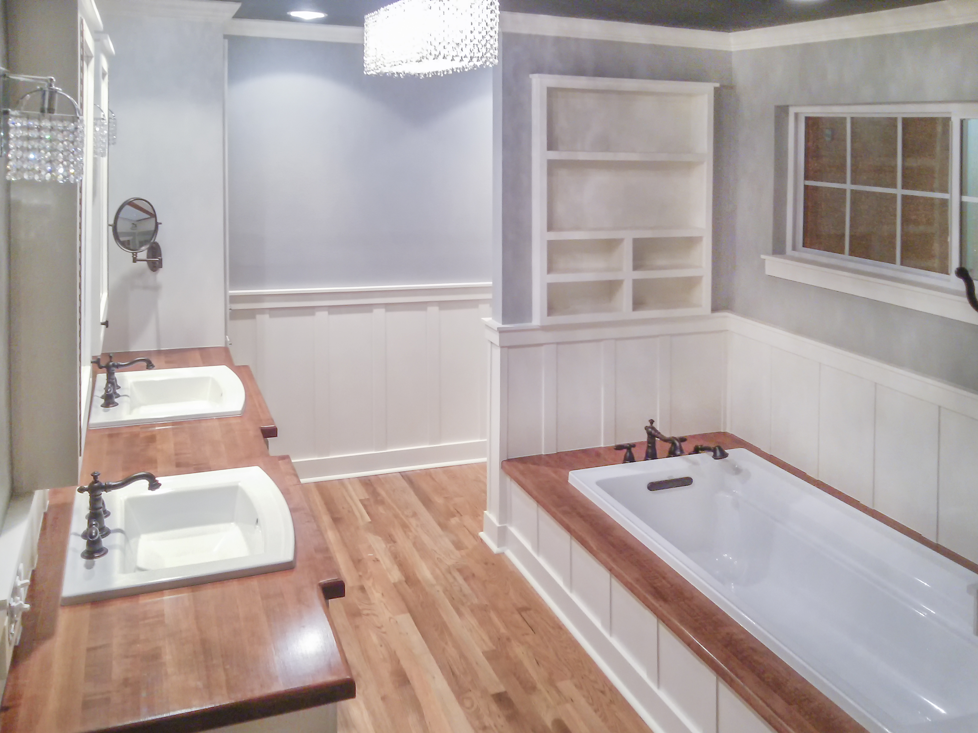 This unique and beautiful master bathroom was a complete addition to this 40’s bungalow-style home. A country home feel served as the basis of the design, along with some additional custom features, and bling!