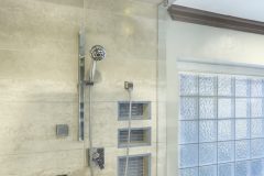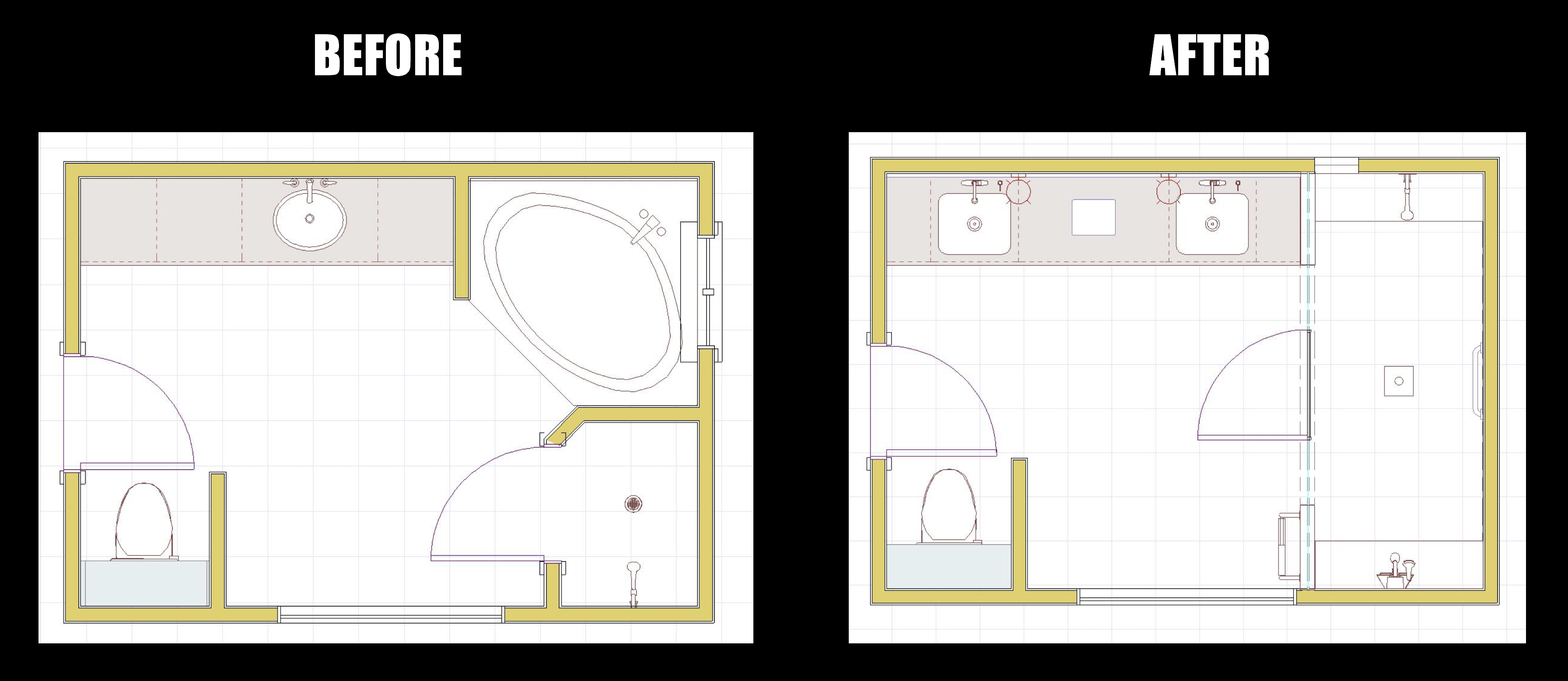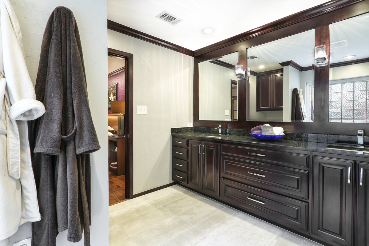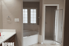 Our recent clients in Arlington, Texas wanted to update their original 1970’s master bathroom with something they had been dreaming of for a long time – a remodeled shower. Due to the layout of the original bathroom and the built-in corner soaking tub that they never used, there was a lot of wasted space. Not to mention the original shower, which was lack-luster and very small. The clients also had to share a sink, which is never ideal in a shared master bathroom! After discussing these issues with the clients, our designers modified the floor plans and redesigned the space by removing the clunky corner tub and tiny shower and converting the entire wall into a spacious, luxury shower. The vanity was also updated with an additional sink, custom electrical outlets, and reworked drawers for better storage.