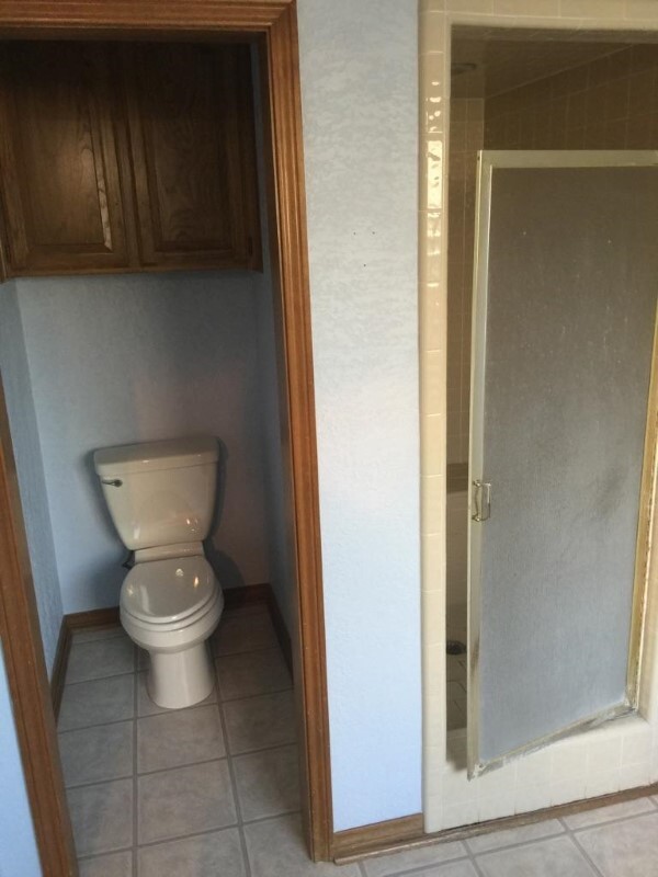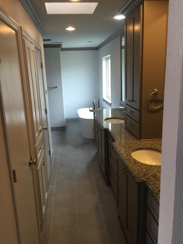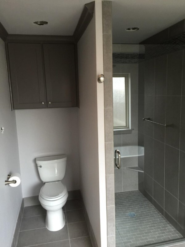 It’s amazing how much bigger a compact space can feel when a sleek, minimalist design is introduced. Take it from these clients, who were tired of their cramped and dated master bathroom. As you can see in the before photos, the narrow space was cramped with massive cabinets, a clunky built-in tub, and low hanging light fixtures. Luckily, our team of professional designers got to work and created an open-concept, flowing design to solve our client’s cramped bathroom woes.
