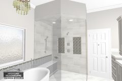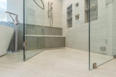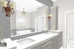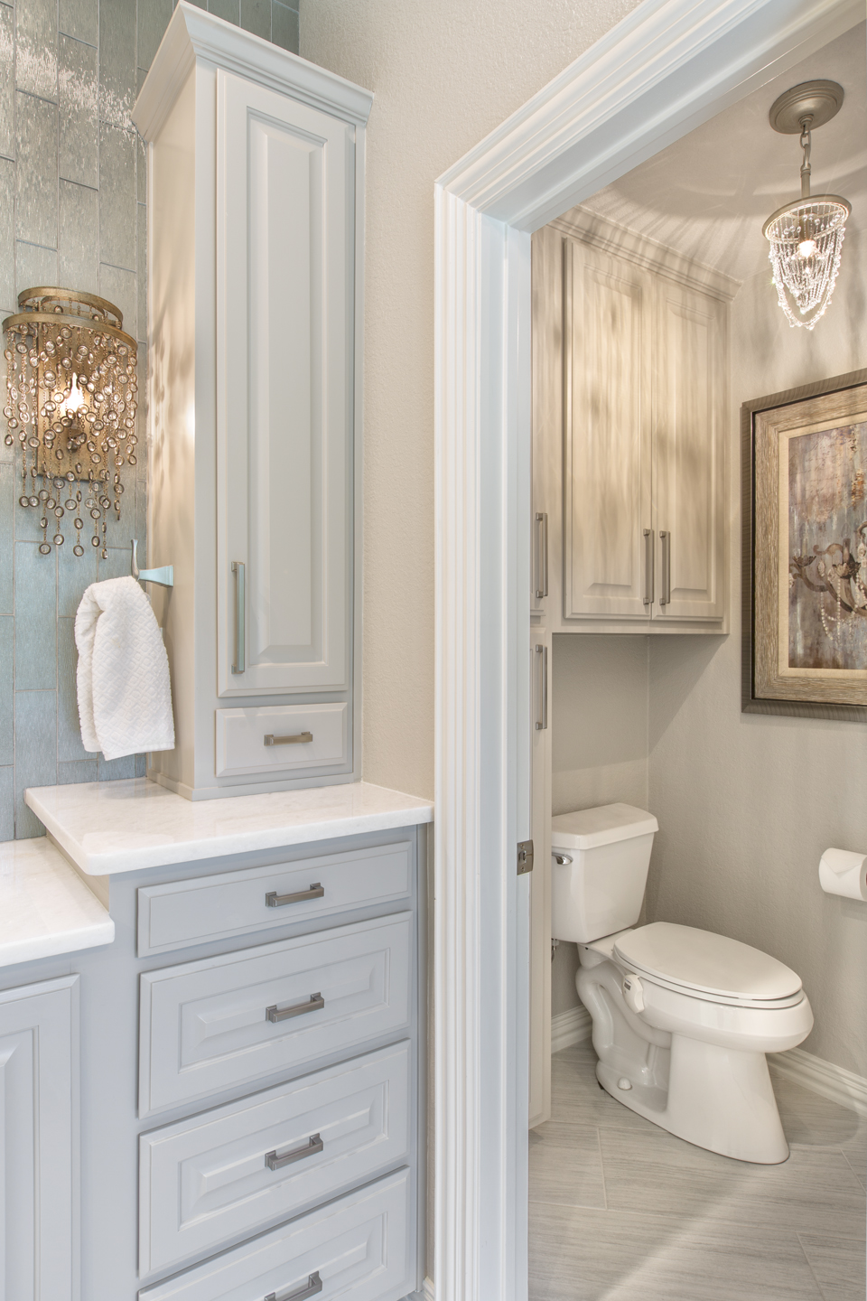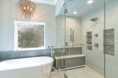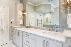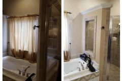 Our recent bathroom project involved renovating a large master bathroom in an upper-end Arlington, Texas home. The existing bathroom was quality and functional, but it was definitely dated with the typical brown tones, wallpaper and fixtures of the 1980’s. All of the dark, earthy colors paired with the poor lighting created a cave-like atmosphere, which made the space feel dim and smaller than it actually was. The clients wanted to brighten the room with a fresher, more modern look, updated features and specialty amenities to match the rest of their luxury home.
