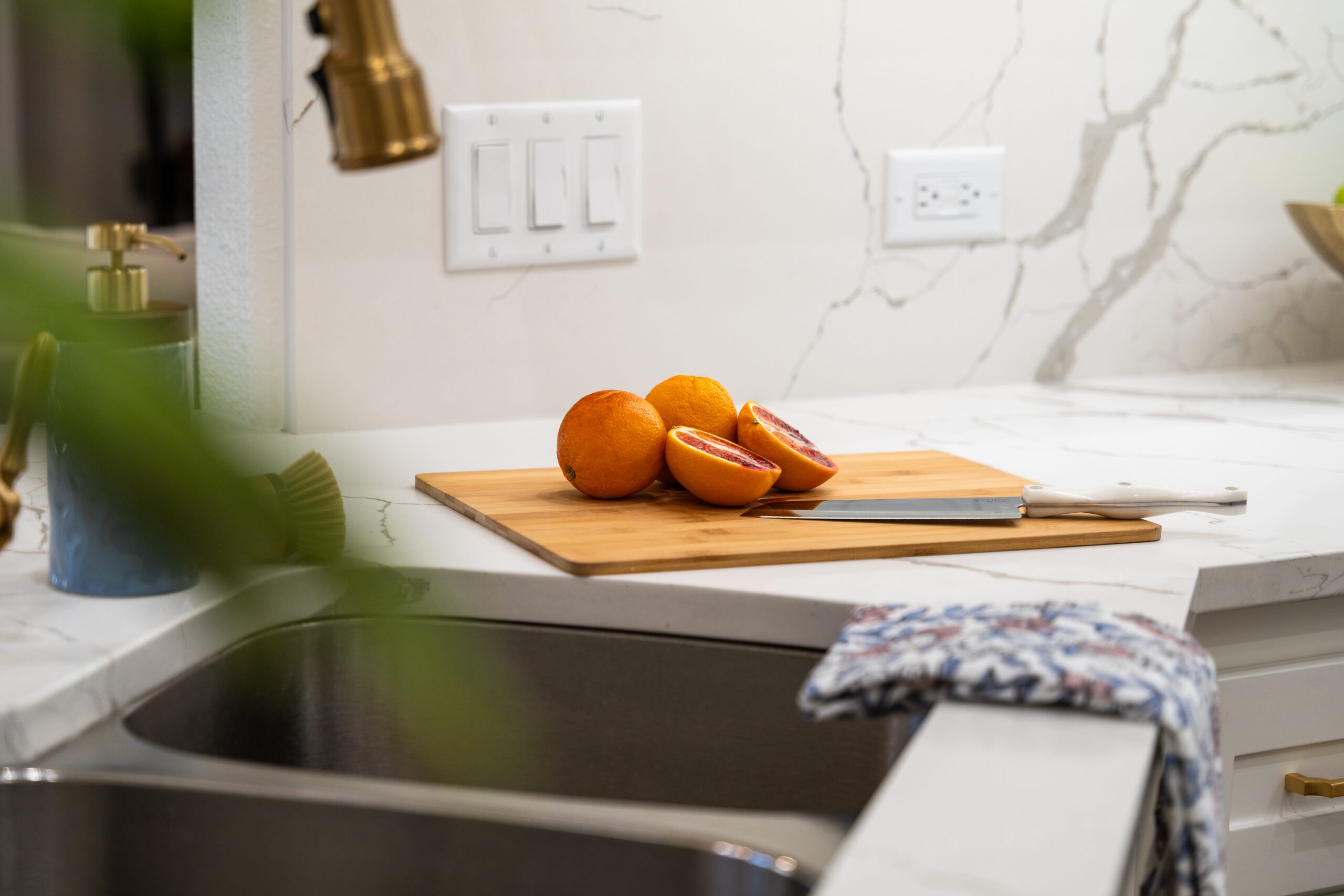 2. Fixtures: A new undermount stainless steel sink and matte gold faucet elevate the functionality and style.
