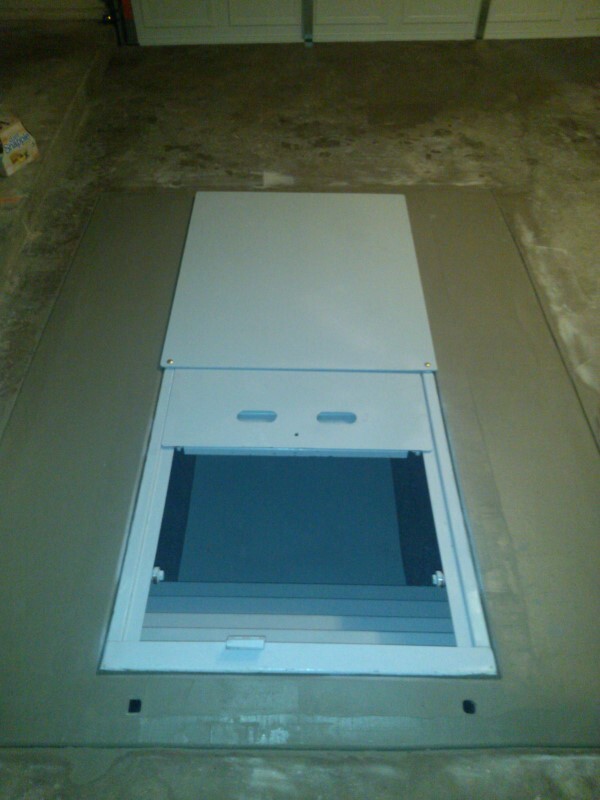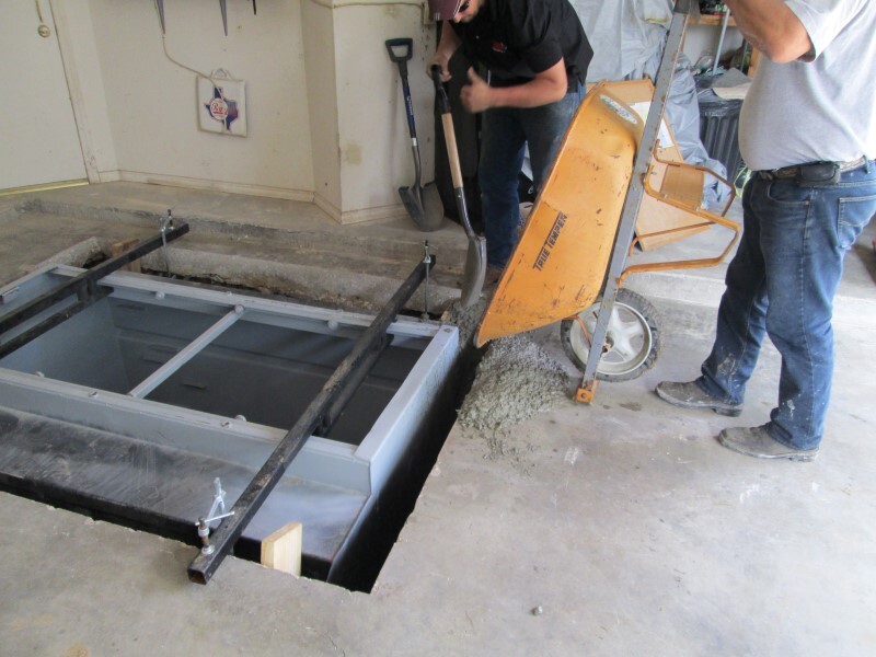Living in Texas, you never know what the weather might do. These clients chose to have a tornado shelter installed in their garage floor. Hopefully they won’t have to use it, but what a comfortable feeling they must have, knowing they have someplace safe to go if a tornado does bear down on them.