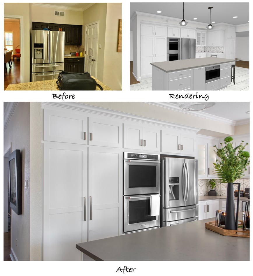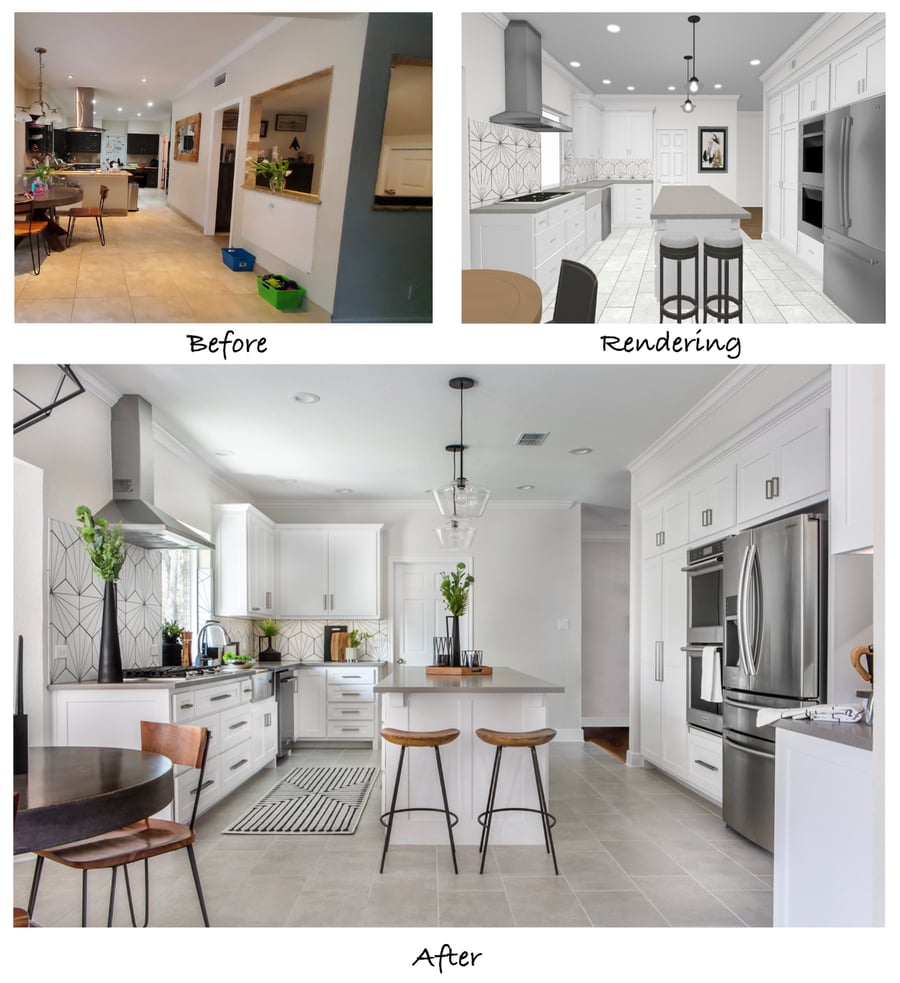 Our recent clients in Arlington, Texas, came to us with plans to renovate their dated 1978 kitchen for a more modern, personalized aesthetic. They had given much thought to the project and were certain a full-gut was the way to go. After some discussion with our team, the clients were excited to have our Designers draw up plans and renderings to provide a clear visual of the transformation.